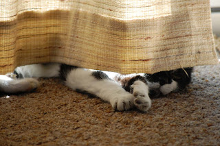And even on the hottest of days, housemate's female cat Smudge, lying against doors to get her vitamin D, under the thermal drapes!